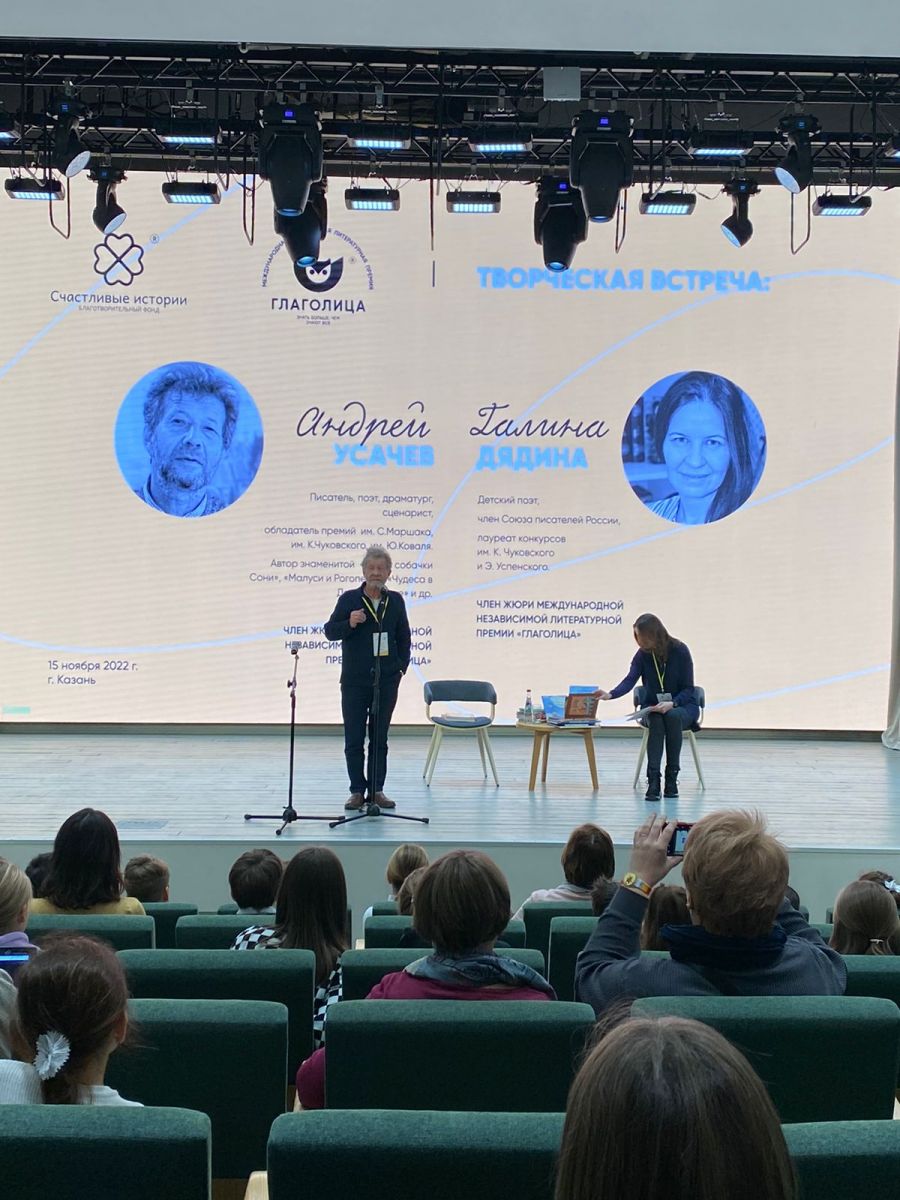Опубликовано: 16.11.202215 ноября ученики 7Б класса посетили благотворительный фонд «Счастливые истории» в рамках финала IX международной независимой литературной премии «Глаголица» с писателями