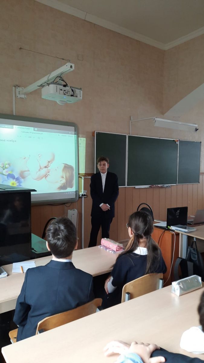 Опубликовано: 22.11.202221 ноября для всех классов гимназии прошёл Всероссийский внеурочный час "Разговор о важном" на тему "День матери".