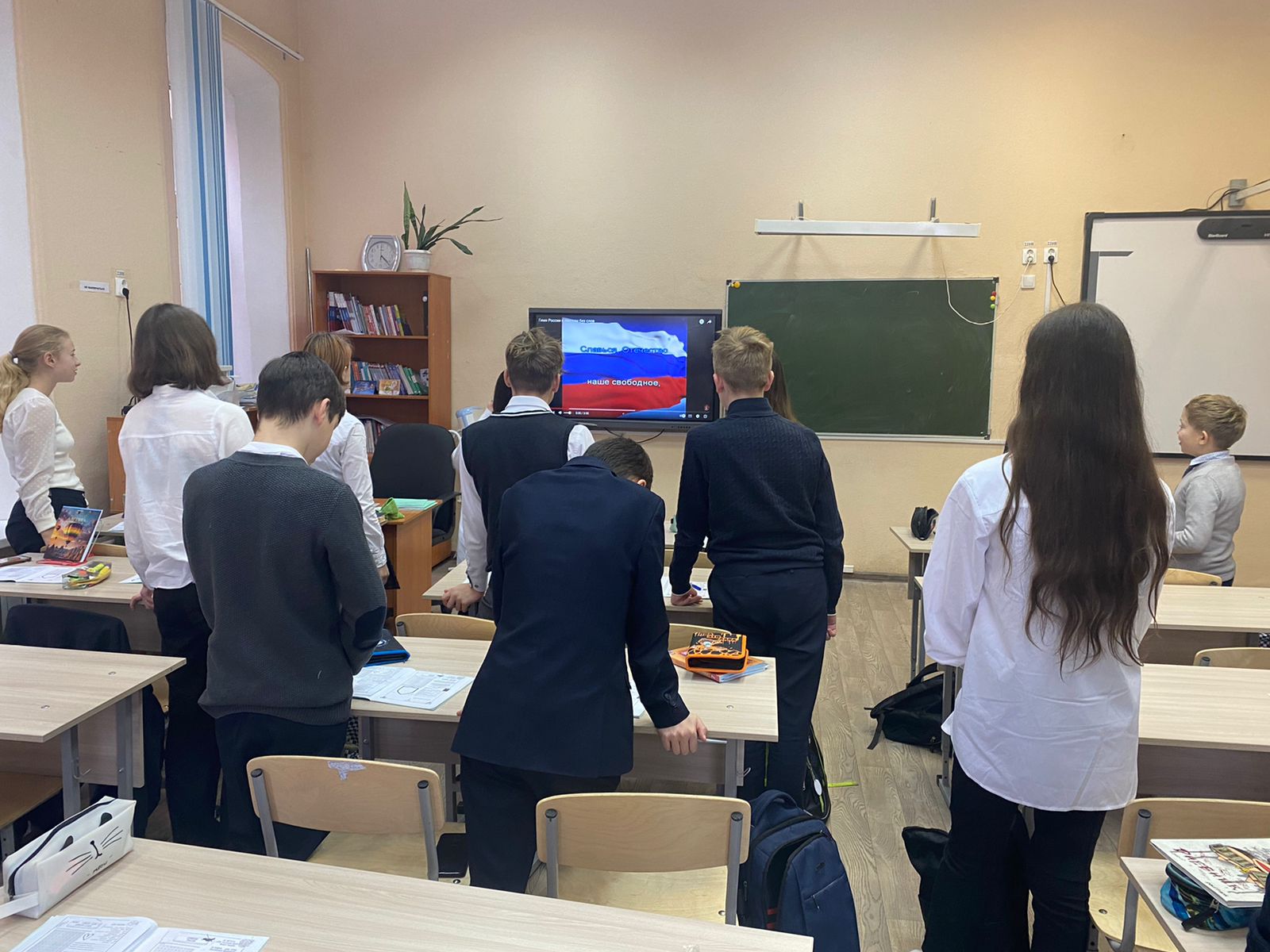 Опубликовано: 28.11.202228 ноября для всех классов гимназии прошёл Всероссийский внеурочный час "Разговор о важном" на тему "Символы России".