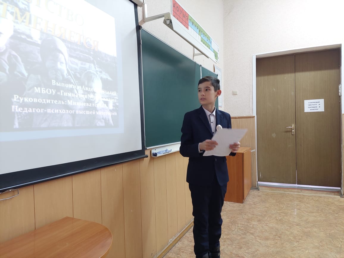 Опубликовано: 09.12.20229 декабря 2022 года обучающиеся 6а Авдеев Виталий и 6б Закиров Нариман, приняли участие в Республиканской конференции "Времён связующая нить". Поздравляем Авдеева Виталия с 1 местом. Руководители: Хабибуллина Ф.К. И Минневалеева А.И.