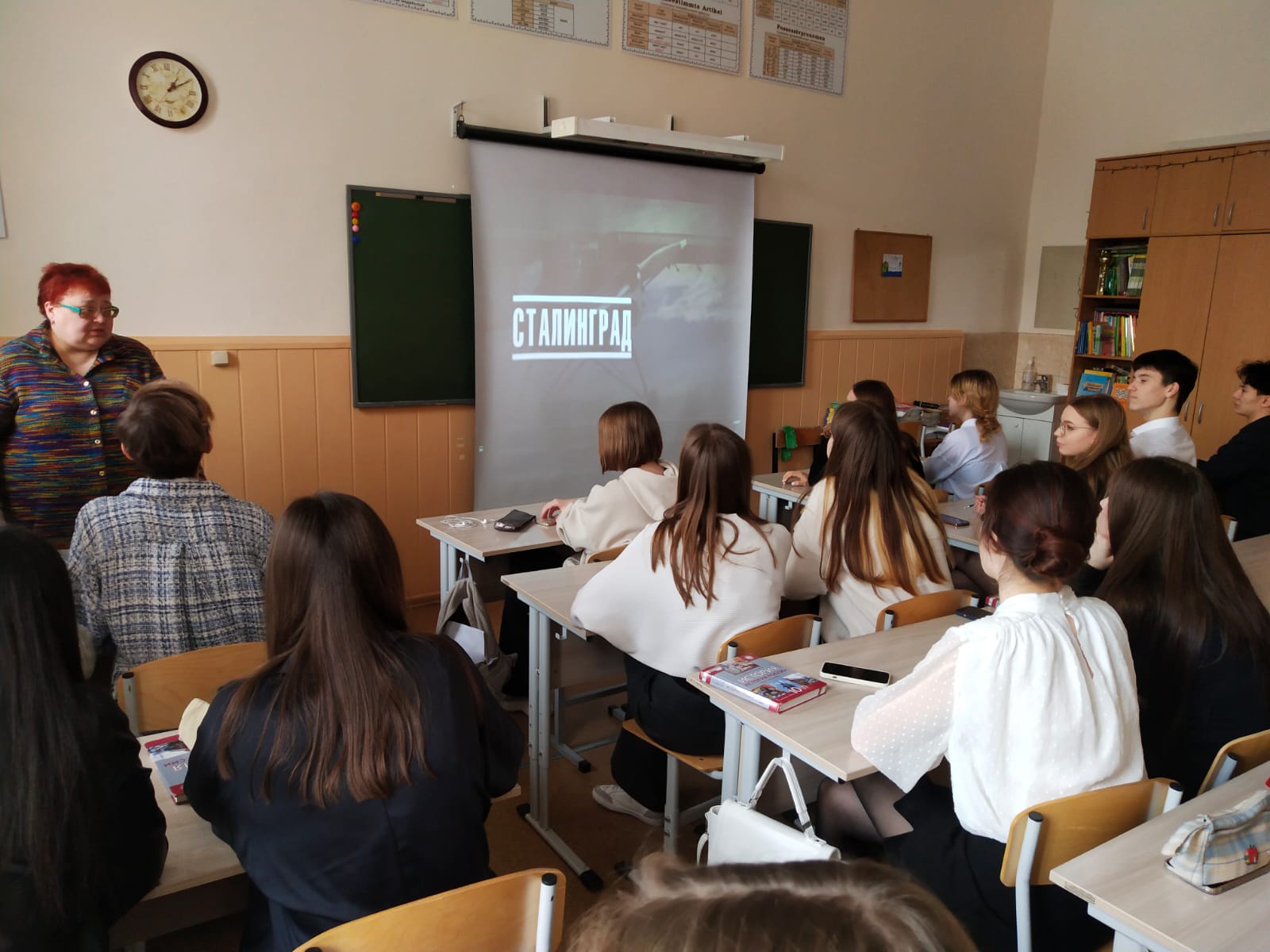 Опубликовано: 02.02.2023В 10 "А" классе прошел классный час посвященный Сталинградской битве