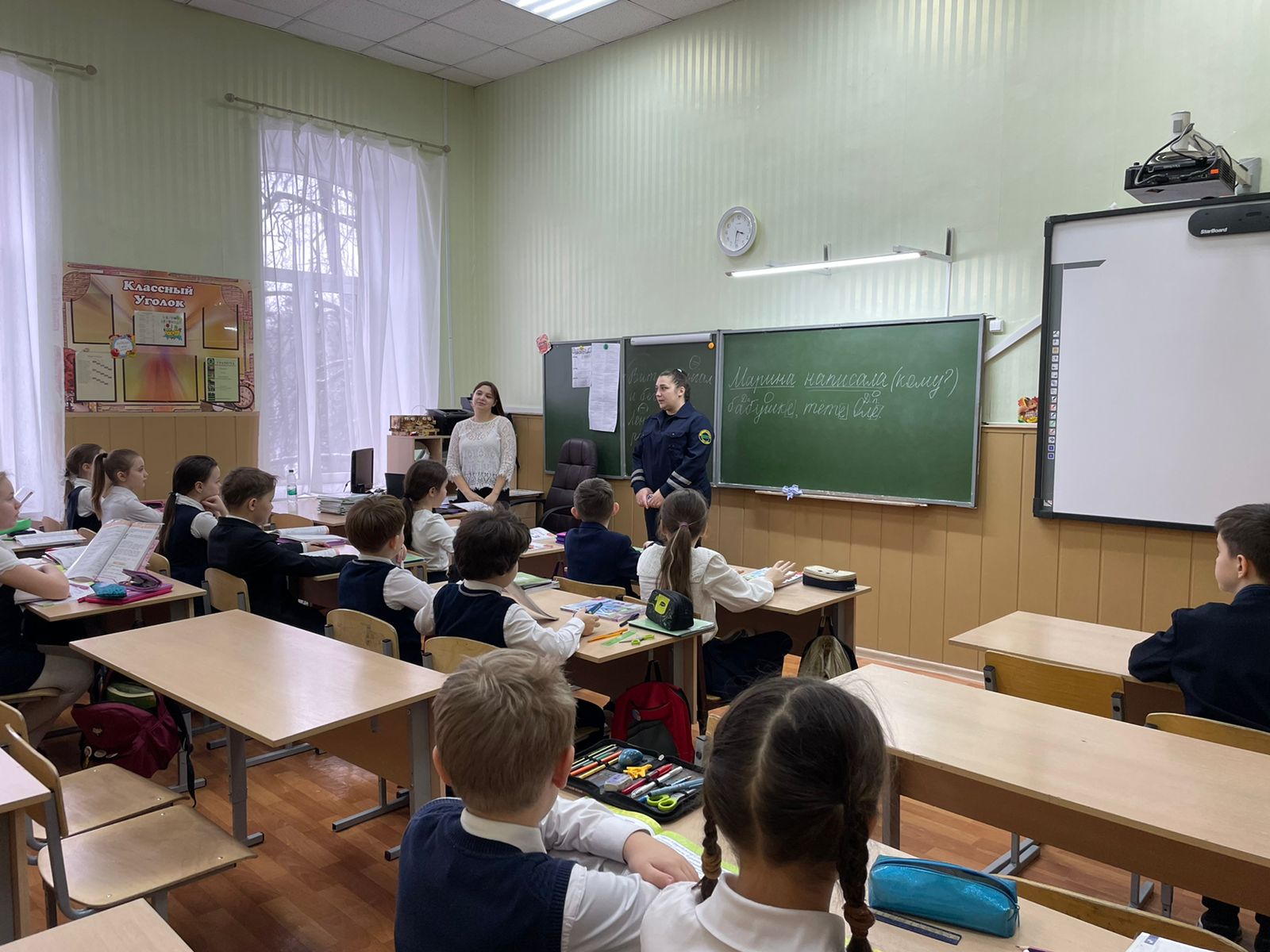 Опубликовано: 10.02.2023Сегодня наших обучающихся посетила Муниципальный служащий сектора БДД исполнительного комитета г.Казани Вахитовского района Ахметшина Анастасия Романовна. Она провела беседу с учениками 1 "В" , 1 "Б" и 3 "В" классов на тему «Правила безопасного поведения на дороге».