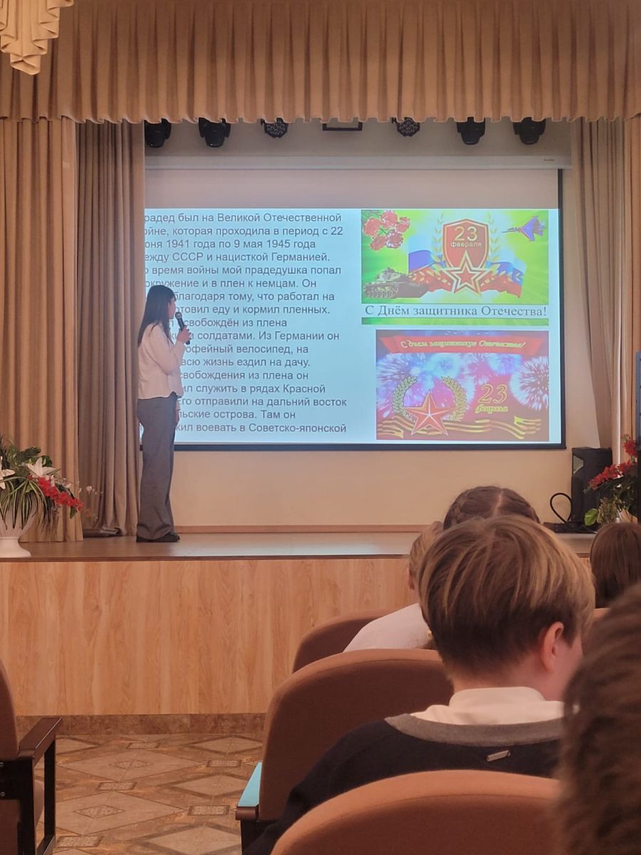 Опубликовано: 21.02.2023В рамках акции «Дети-детям» проходят выступления с 1-11 классы на тему «Моя семья в годы Великой Отечественной войны»