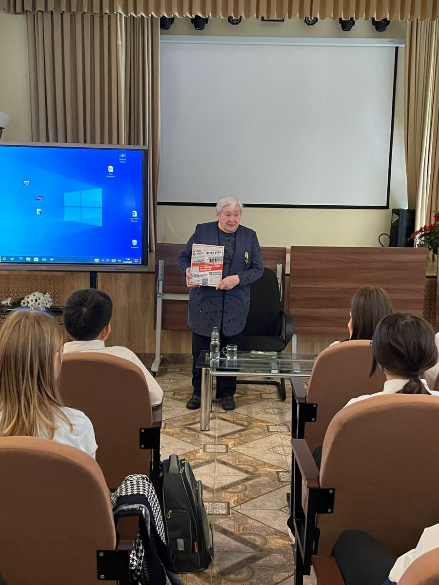 Опубликовано: 27.02.2023В рамках месячника гражданско-патриотического воспитания прошла встреча с бывшем учителем-ветераном нашей школы Шамовой Альфией Афзаловной. Встреча была посвященна детям войны "Сквозь огонь пяти войн".jpg)