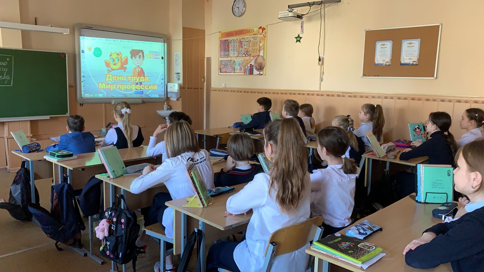 Для всех классов Гимназии прошёл Всероссийский внеурочный час "Разговоры о важном" на тему "День труда. Мир профессий!".