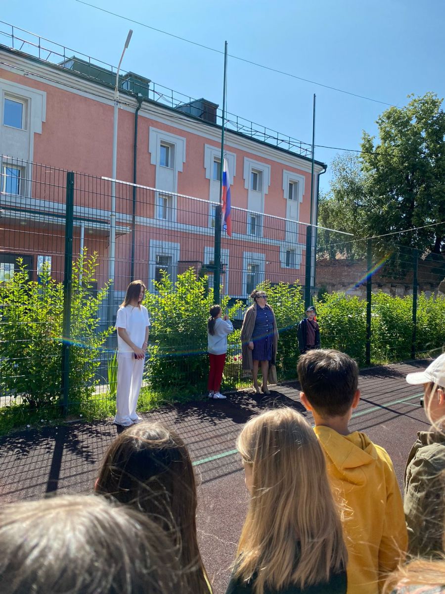 Опубликовано: 13.06.202313 июня прошла Торжественная линейка с поднятием флагов и пением гимнов РФ и РТ.