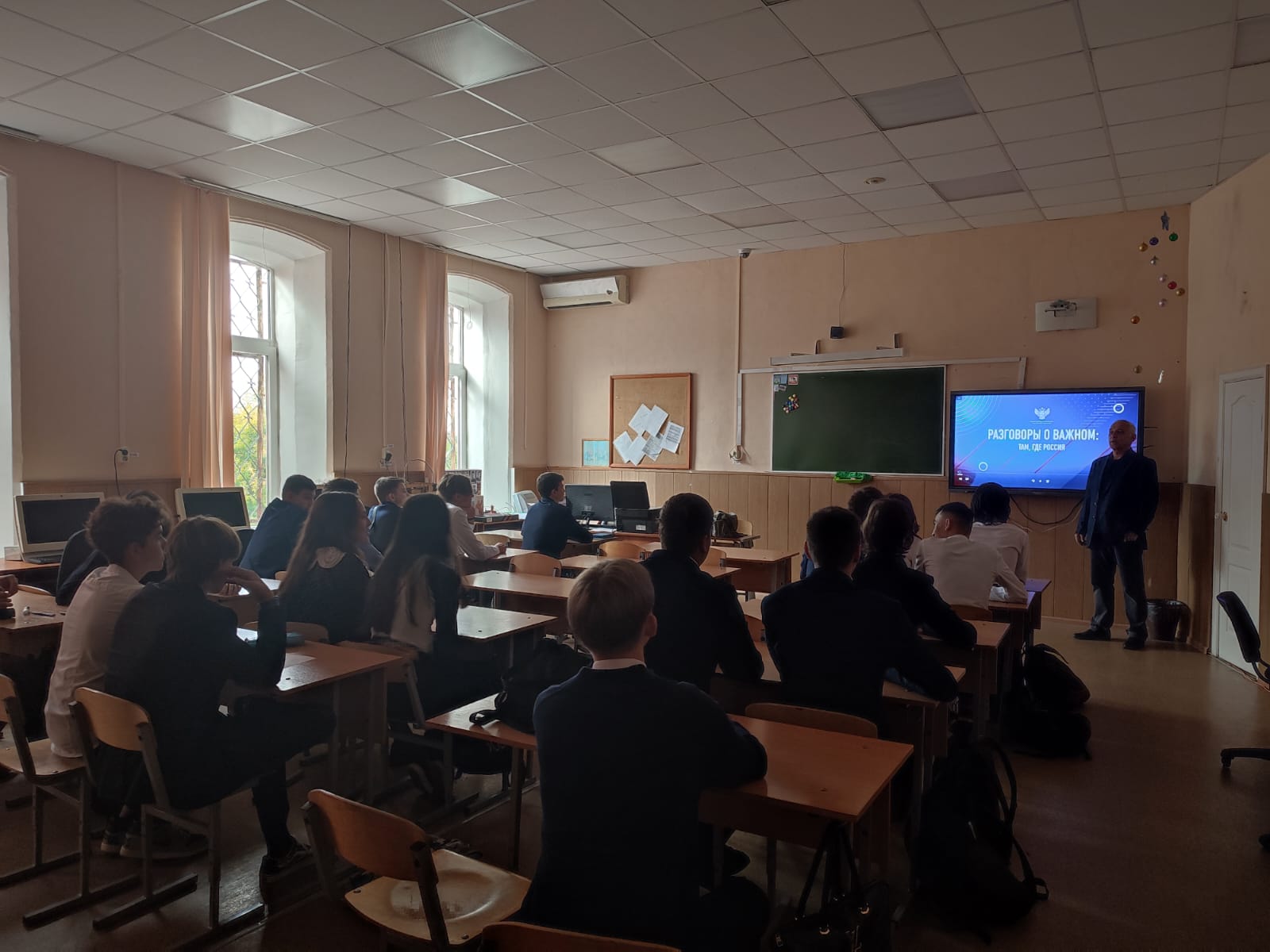 Опубликовано: 11.09.2023Для всех классов Гимназии прошёл Всероссийский внеурочный час "Разговоры о важном" на тему "Там, где Россия!"