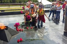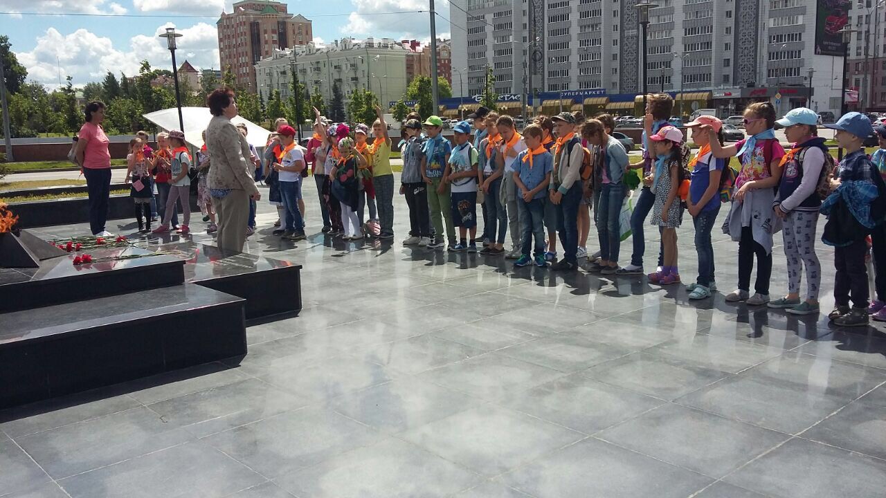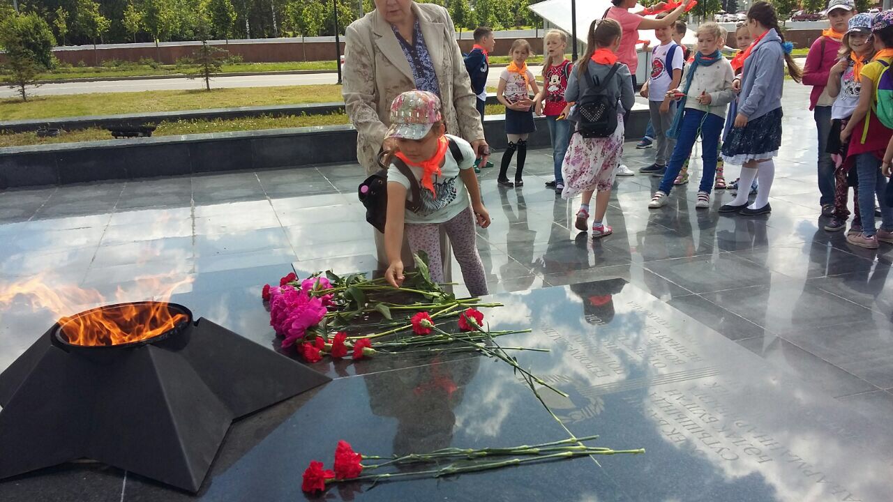 Сегодня в День памяти и скорби ребята из лагеря "Робинзон" возложили цветы у вечного огня Парка Горького и минутой молчания почтили память павших .