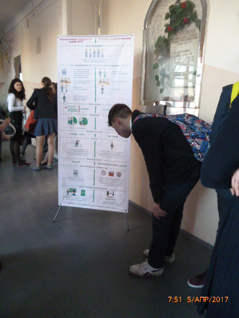 5 апреля 2017г. в лицее №5 в рамках формирования правовой культуры и гражданской позиции правового информирования в сфере призыва состоялась встреча старшеклассников с руководителями Региональной общественной правозащитной организации родителей призывников РТ «За сыновей» Алеткиным Германом Николаевичем и Ниной Витальевной. Ребята познакомились с АГС (ст. 59 «Конституции РФ»), обязанностями и правами призывников. Гости ответили на вопросы.