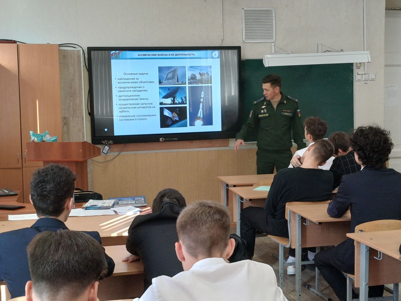 В рамках реализации единой модели профориентации «Россия - мои горизонты» 6 октября 2023г. в лицее №5 состоялась встреча преподавателя Военно-космической Академии им. А.Ф.Можайского в Санкт-Петербурге подполковника Алимова Наиля Ильгизовича с юношами 11 классов. Ребята познакомились с направлениями работы данного ВУЗа, специальностями, посмотрели фильм об Академии, получили ответы на интересующие их вопросы.