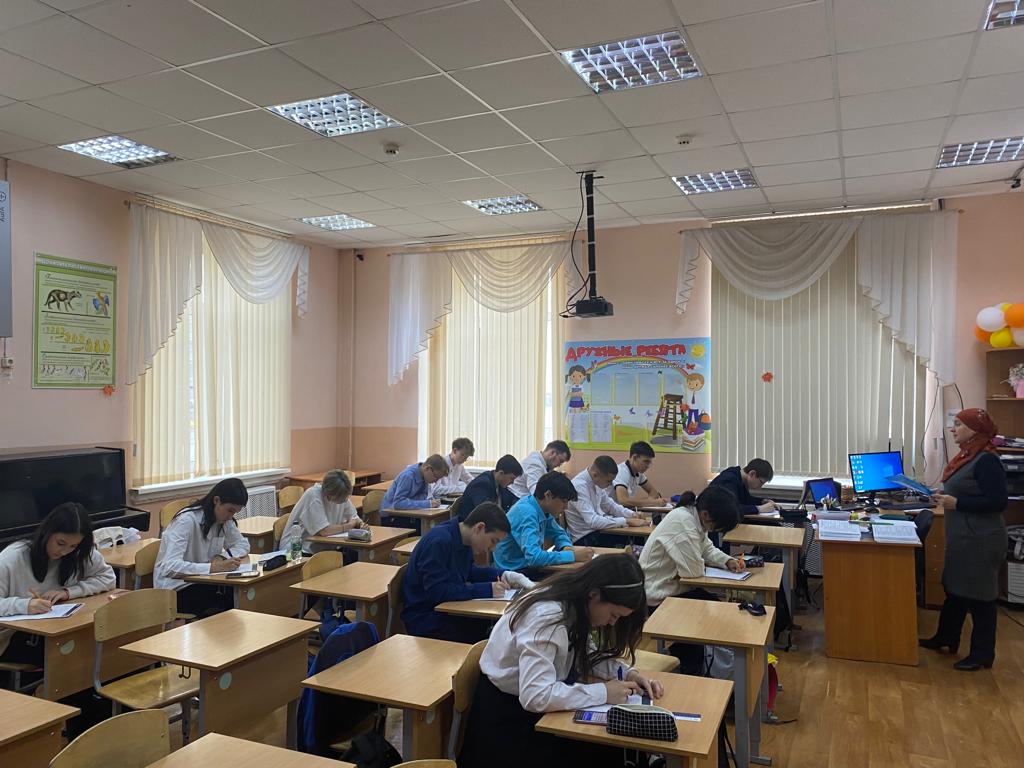 13.10.2023г в лицее прошла акция «Татарча диктант». Наши ученики и коллеги с удовольствием написали диктант, проверяли свои знания по татарскому языку! Собравшимся был представлен отрывок из произведения Рустама Галиуллина «Васыять»