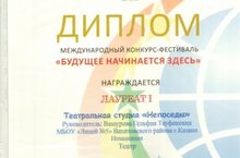 Администрация лицея №5 поздравляет коллектив детской театральной студии «Непоседы» под руководством Вашуровой Гельфии Тауфиковны с ПОБЕДОЙ на международном фестивале-конкурсе «Будущее начинается здесь»!!! Замечательная постановка к 70-летию ПОБЕДЫ в Великой Отечественной войне! Желаем дальнейших творческих успехов!