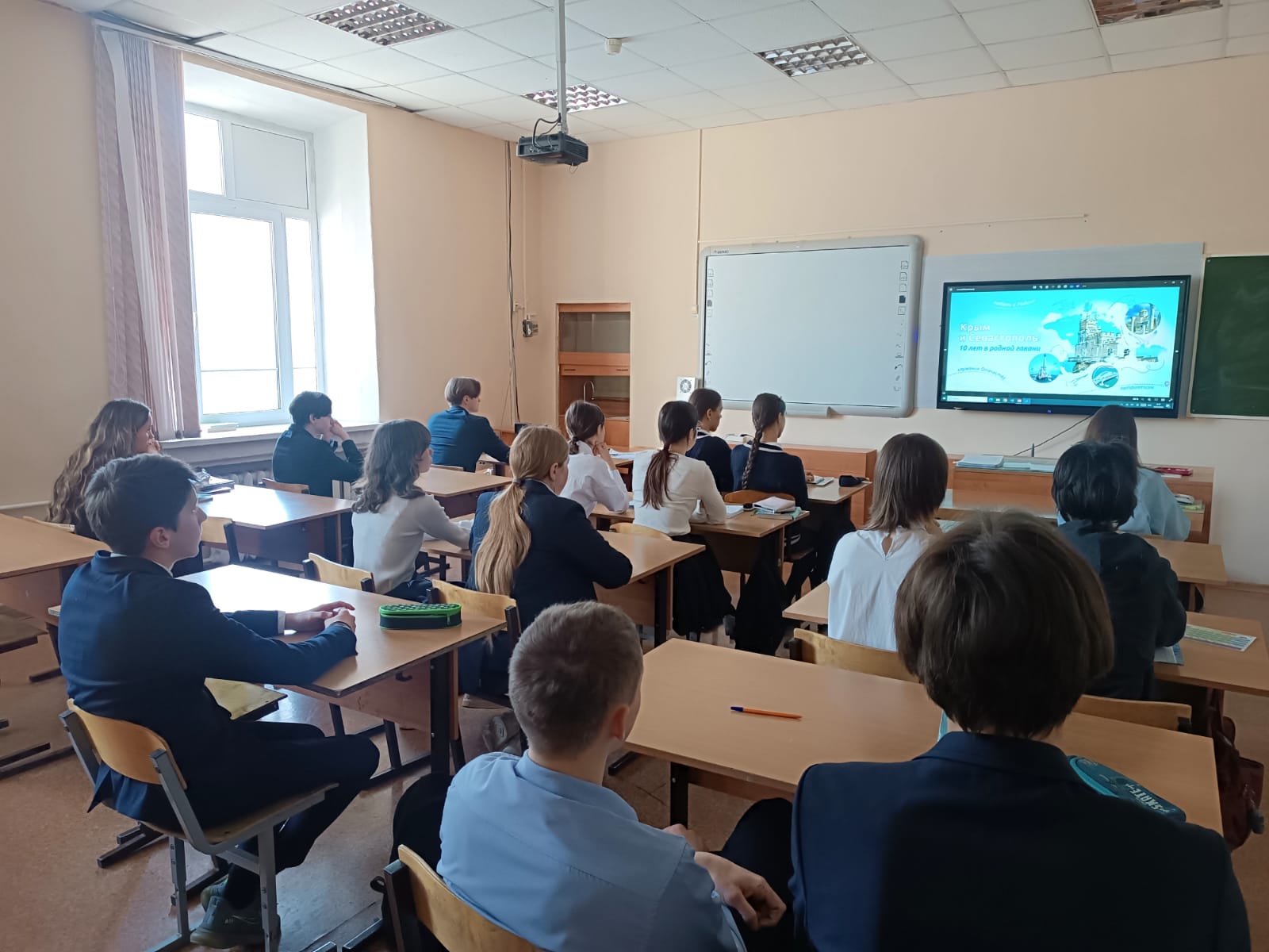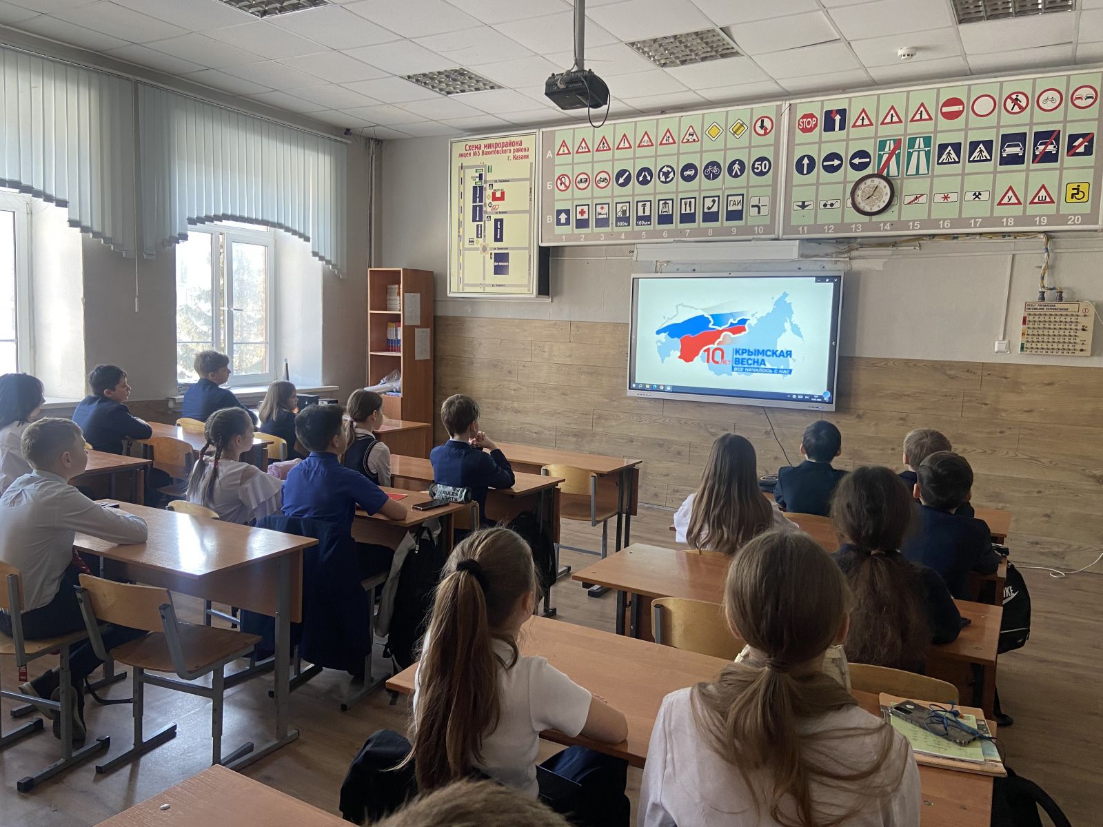 Куратор трека «Наука» РДДМ, Мухамадеева Марьям, провела в 9в и 7в классах познавательное мероприятие с интерактивной викториной «Крым - дорога домой».