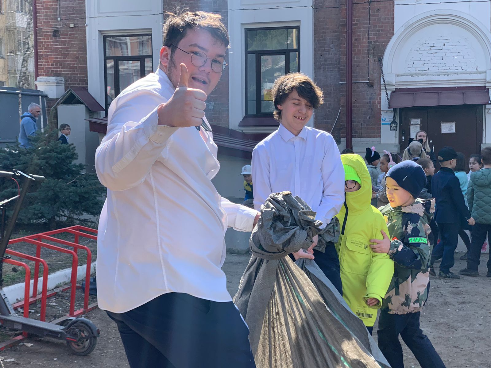 13 апреля учащиеся 8а класса приняли участие в общешкольном субботнике