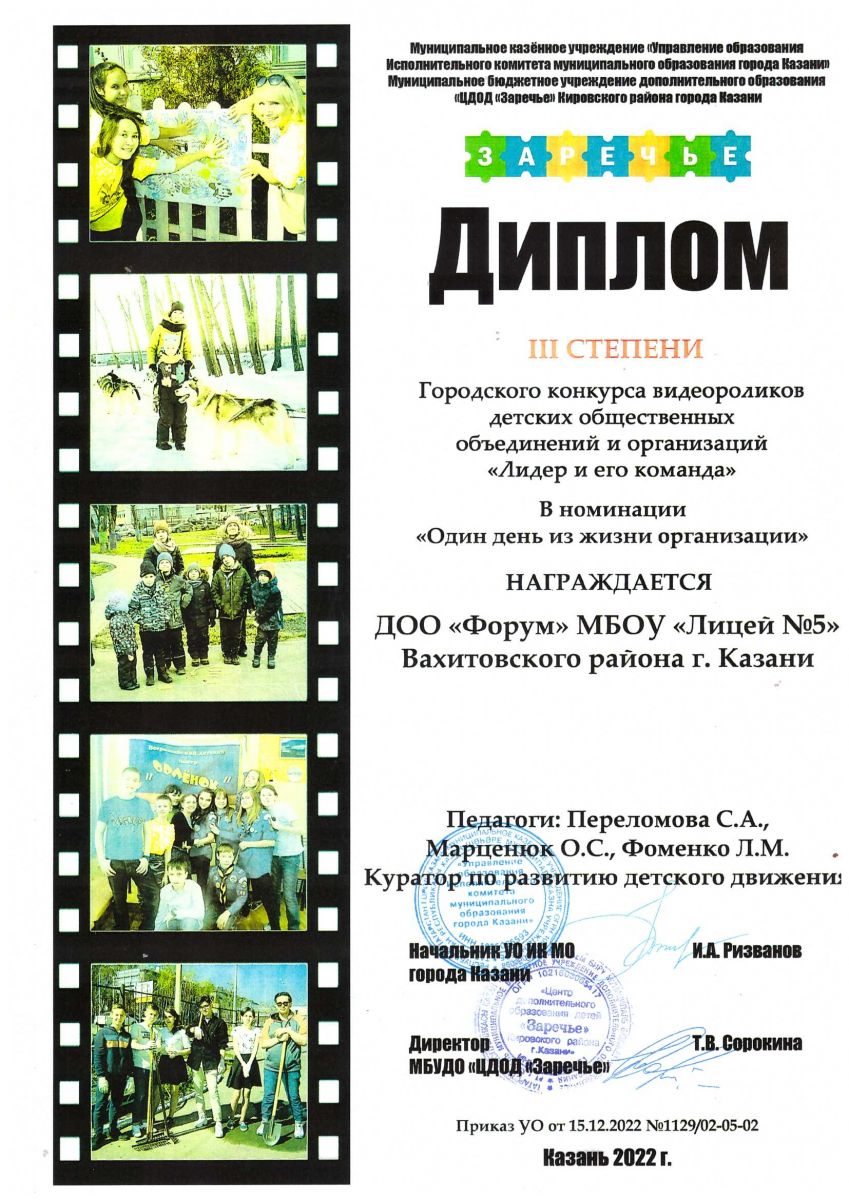 ДОО «Форум» заняла 3 место в городском конкурсе видеороликов детских общественных объединений и организаций «Лидер и его команда» в номинации «Один день из жизни организации».Поздравляем!