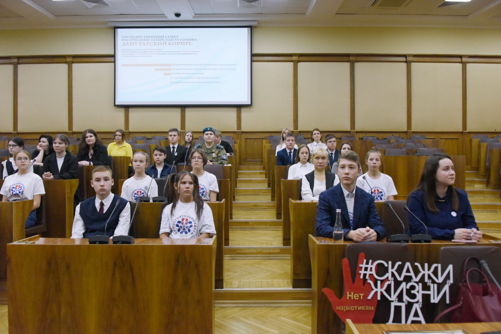 Сегодня вместе с активистами и участниками антинаркотического проекта «SаMоSтоятельные дети» ученики нашего лицея -Хайруллин Амир,Рахмонов Акрам и Солосина Полина посетили Государственный Совет РТ.Они встретились с председателем Комитета по социальной политике Светланой Захаровой и заместителем председателя Комитета по законности и правопорядку Александром Чубаровым. Перед началом мероприятия для участников встречи была организована обзорная экскурсия по зданию парламента. Гости побывали в музее парламентаризма, библиотеке, зале заседаний, где принимаются основные законы республики. Депутаты ответили на вопросы участников проекта «SаMоSтоятельные дети» и активистов республиканского Союза детских организаций.