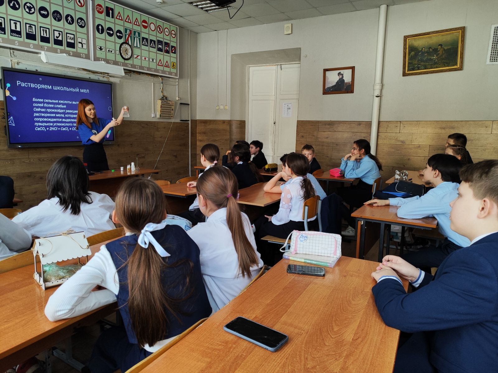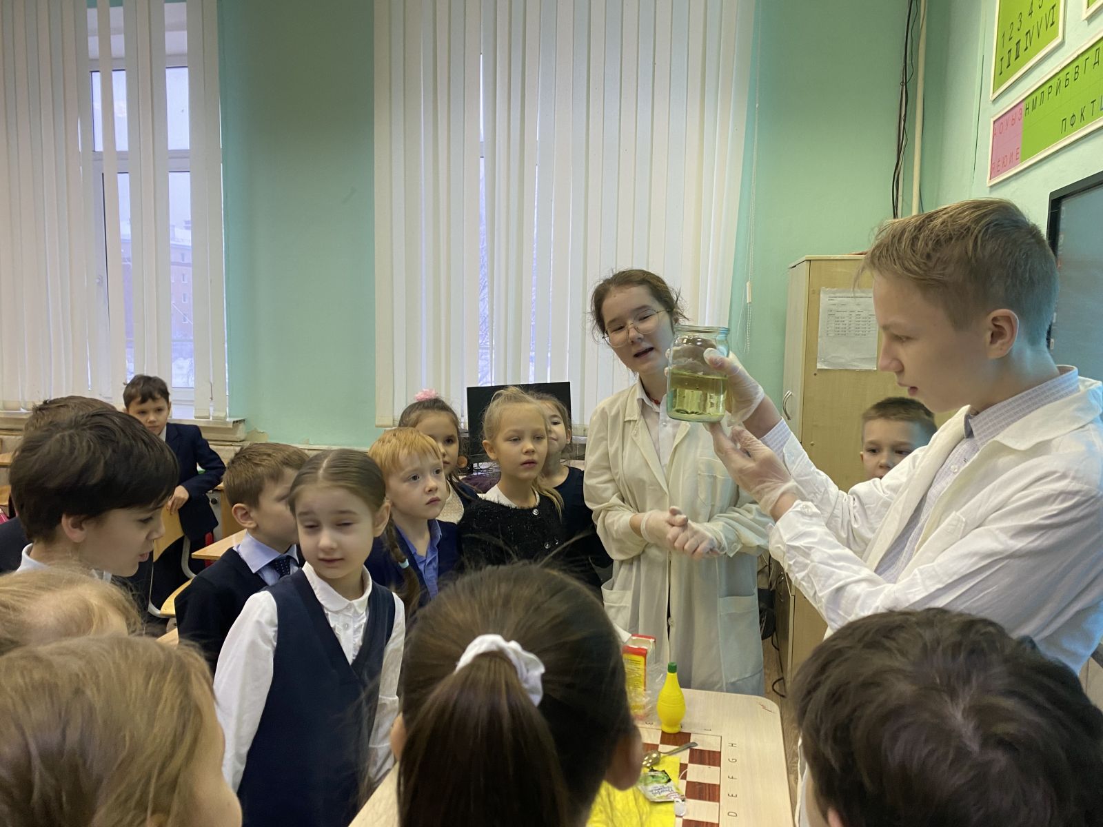 В рамках внеурочного занятия «Разговоры о важном» ученицы 11А класса, Спиридонова Ксения и Смолина Илана, под руководством учителя физики, Селивановой Г.В., провели для 5 классов мероприятие «Познание мира через эксперименты и опыты». Детям показали и рассказали, как происходит то или иное действо в природе, уточнили знания о свойствах и качествах предметов, их изменениях, дали почувствовать радость открытий. -