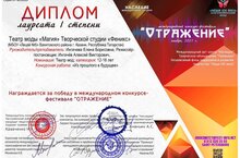 Поздравляем Театр моды "Магия" Творческой студии "Феникс" с победой в Международном конкурсе "Отражение". На суд жюри была представлена коллекция " Из прошлого в будущее" по мотивам татарских национальных костюмов. Так держать! Желаем дальнейших успехов.