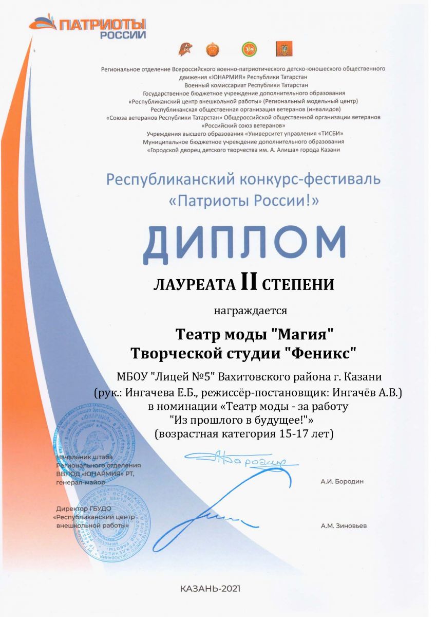 Поздравляем Театр моды «Магия» творческой студии «Феникс» со званием Лауреата 2 степени в Республиканском конкурсе «Растим патриотов России»!
