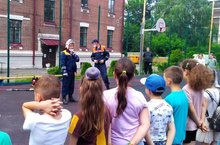 Сегодня в лагере прошла тренировка по эвакуации из здания школы. Благодаря чёткому алгоритму действий, слаженности и оперативности, эвакуация прошла четко и быстро. В течение 5 минут все отдыхающие и работники школы покинули здание школы. На спортивной площадке детей ждали сотрудники МЧС. В ходе встречи гости рассказали детям о мерах пожарной безопасности, способах защиты в чрезвычайных ситуациях, причинах возникновения пожара, что необходимо сказать диспетчеру при обращении в службу спасения.