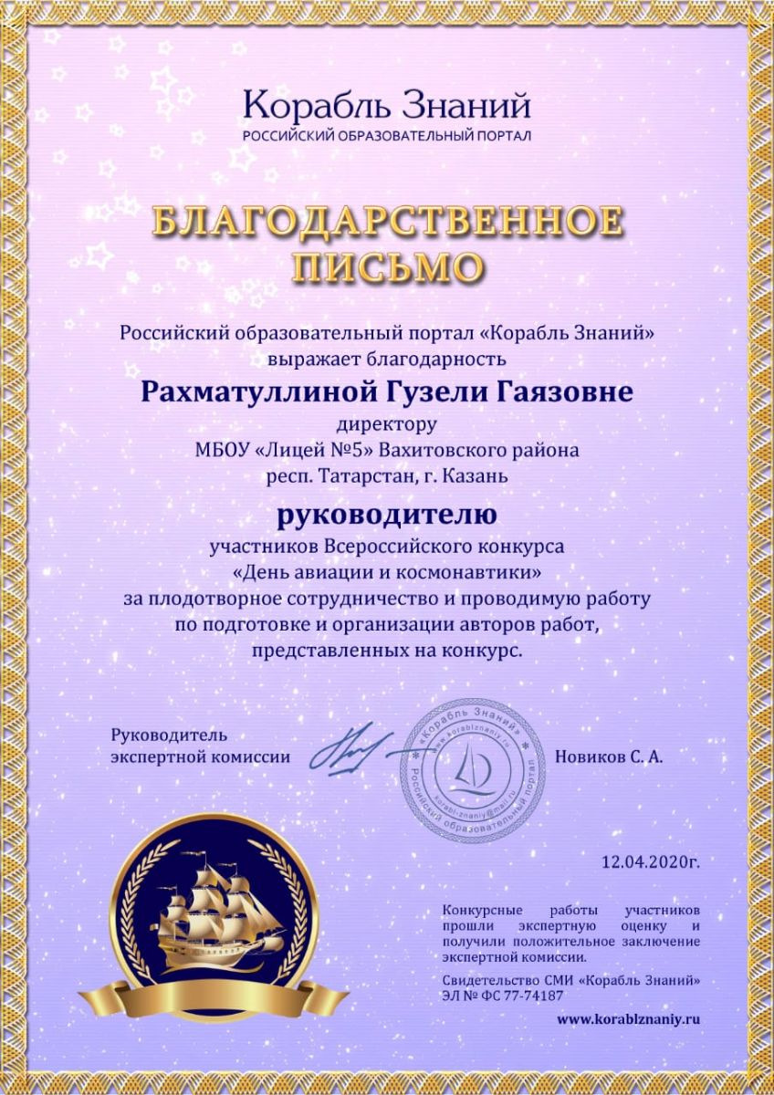 | E-Mail: | L5.kzn@tatar.ru licei5@yandex.ru |