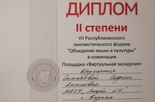28.02.2020 в Высшей школе иностранных языков и перевода Института международных отношений КФУ прошел VII Республиканский лингвистический форум «Объединяя языки и культуры»( “Bridging Languages and Cultures”). Участниками форума стали учащиеся 8-11 классов средних общеобразовательных школ, лицеев, гимназий РТ. В работе форума было представлено несколько площадок: «Властелин звуков», «Языковой лабиринт», «Тайны перевода», «Виртуальная экскурсия». Ученица 8 «А» класса МБОУ «Лицей№5» Симакова София заняла 2 место (площадка «Виртуальная экскурсия»). Руководители :Ганеева Р.А, Закирова Г.Г. София представляла работу на английском языке про город Елабугу. Поздравляем дипломанта и желаем ей дальнейших успехов!