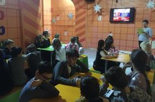 Ребята своими руками делали новогодний елочный венок, принимали участие в разных конкурсах и весело провели время.