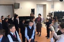 26 сентября в музее Мусы Джалиля состоялась творческая встреча писателя, драматурга и переводчика Бориса Вайнера и поэтессы Наили Ахуновой с учащимися 7а,б и 6а,в классов (под руководством учителей родного языка и литературы Камалиевой Г.И. и Давлетшиной Г.А). Кадыров Ильяс, ученик 6а класса стал победителем игры- конкурса и был награжден сборником стихов Н.Ахуновой. Встреча ребятам очень понравилась. В конце встречи было сделано памятное фото.