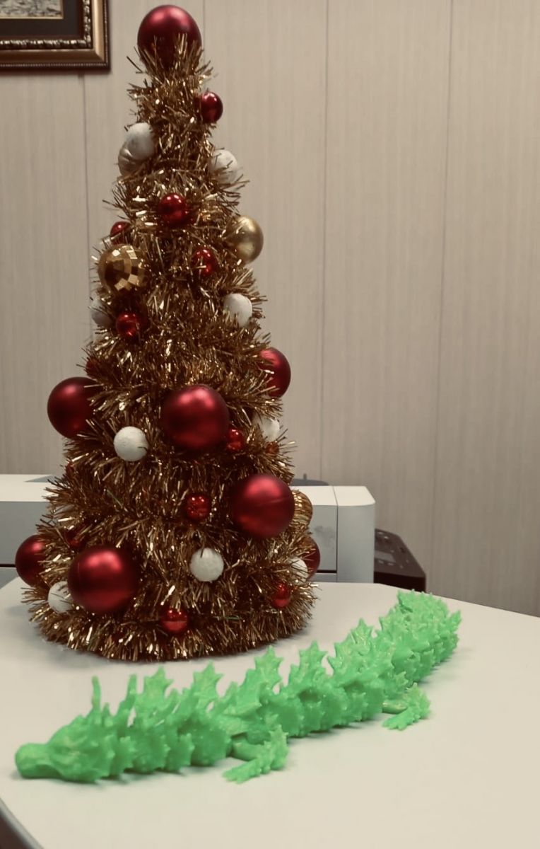 В преддверии зимних праздников обучающиеся и педагоги собрались вместе, чтобы преобразить и создать атмосферу настоящего новогоднего чуда. Все с радостью украшали классы, школьные елки, оформляли окна. Педагоги дополнительного образования Ингачев А.В. и Ингачева Е.Б. подготовили новогоднюю фотозону «Символ года». А ребята 8В класса, Гузев Кирилл и Борисов Глеб, сделали на 3-D принтере символ года.