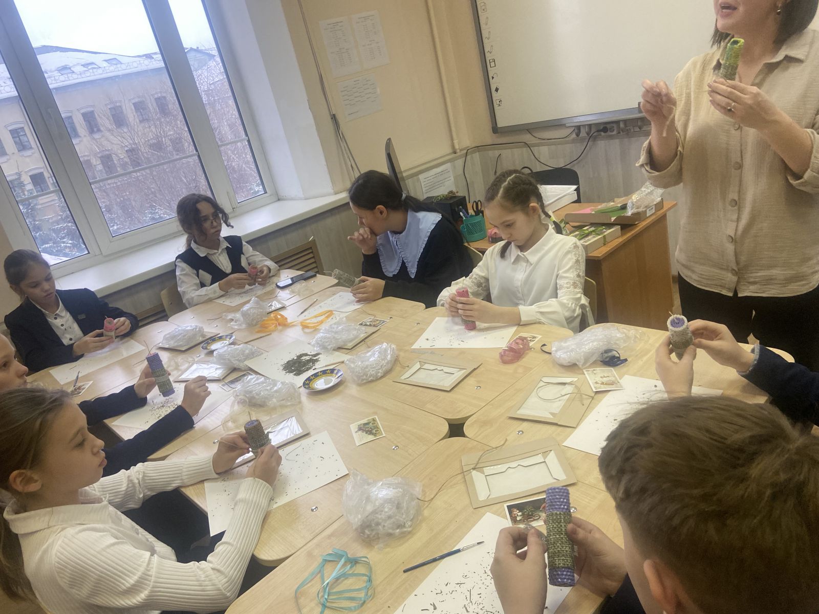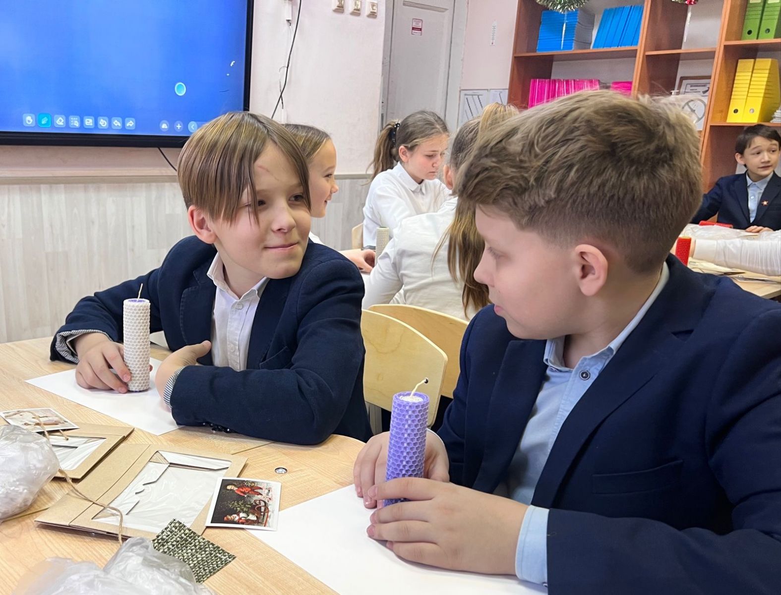 В 5В классе был проведен увлекательный мастер-класс «Свечи из вощины с новогодним декором». Участникам мастер-класса было предложено своими руками изготовить уникальные свечи из вощины. Ведущая мероприятия рассказала ребятам о технологии и способах изготовления свечей. Под чутким руководством организатора ребята ответственно подходили к каждому этапу. Созданные участниками мастер-класса ароматные свечи станут прекрасным подарком к Новому году!