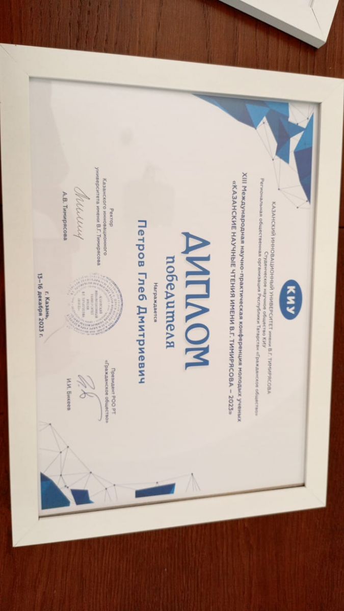 Поздравляем Петрова Глеба с победой на конференции КИУ!