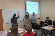Затем учителя были разделены на несколько рабочих групп и подготовили краткие презентации-выступления на темы, связанные с основным докладом. Все это должно способствовать повышению качества работы учителей.