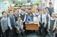 Участник обороны Москвы, Березкин Яков Матвеевич с первых дней войны и до тяжелого ранения в 1944 году находился в действующей армии, служил командиром взвода разведки. От имени коллетива школы директор, Ольга Львовна Трупп, вручила юбиляру поздравительный адрес, небольшой подарок и шуточную медаль "За взятие 100-летнего юбилея".