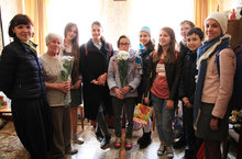 Сегодня учащиеся нашей школы поздравили ветеранов ВОВ и тружеников тыла, проживающих в нашем микрорайоне с предстоящим праздником - Днем Победы.