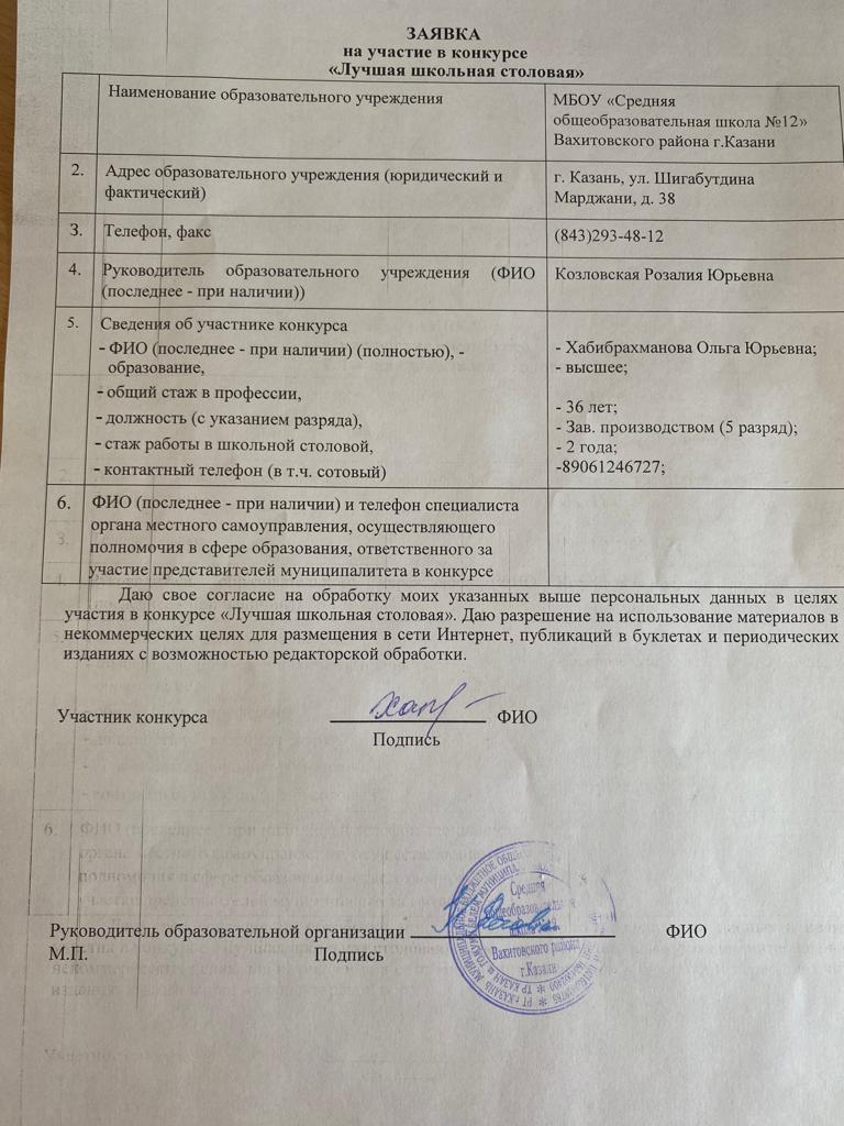 Муниципальное бюджетное общеобразовательное учреждение «Средняя общеобразовательная школа №12» Вахитовского района г. Казани