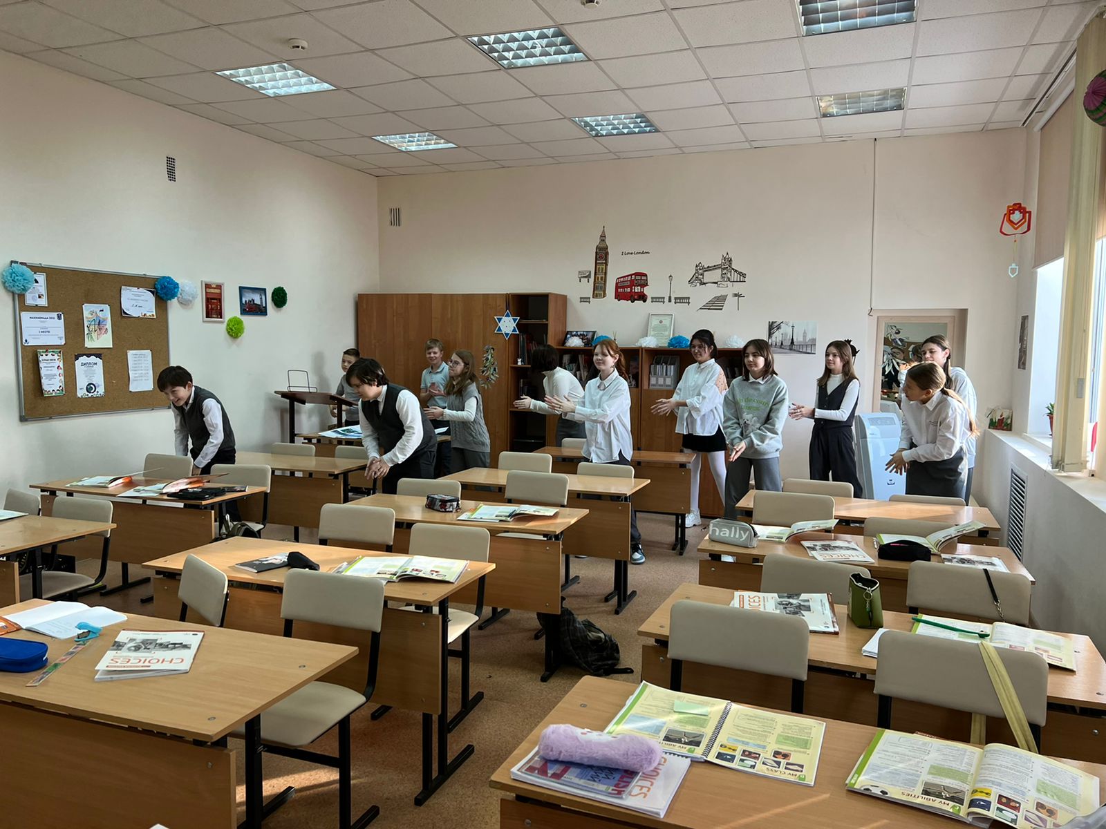 28 февраля учениками 10А класса были проведены физкультминутки на английском языке в 5-6 классах.