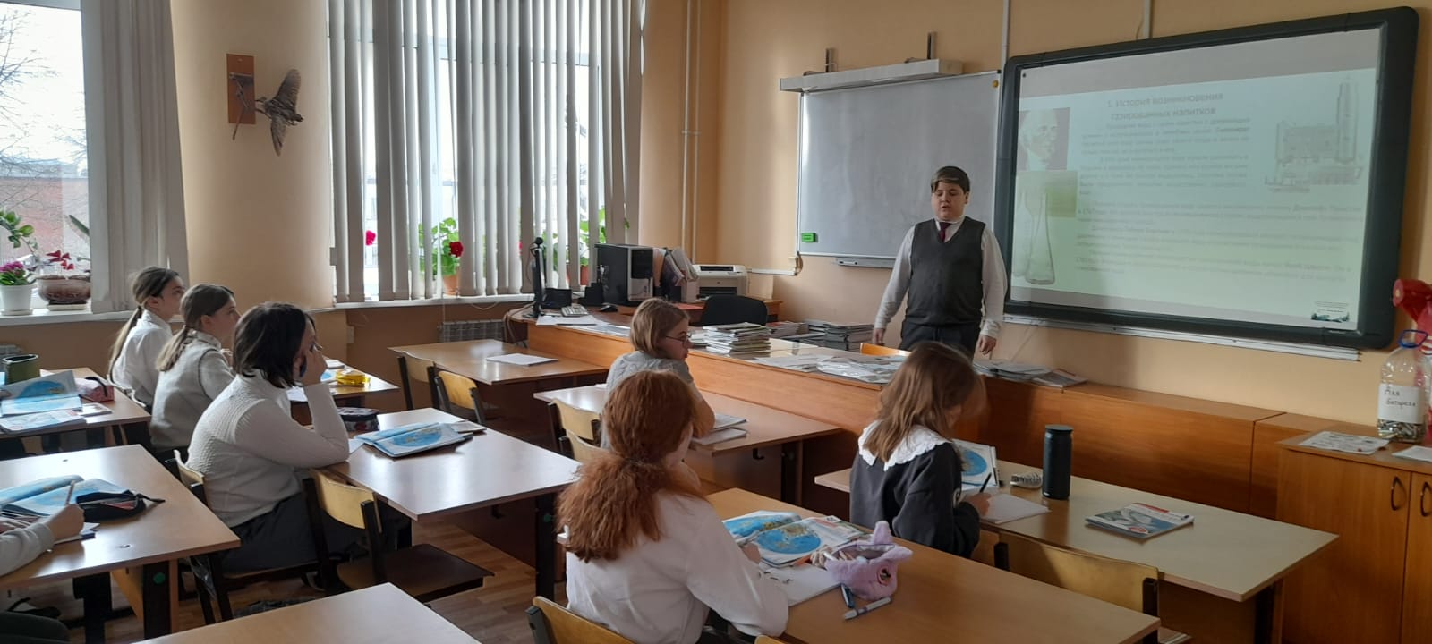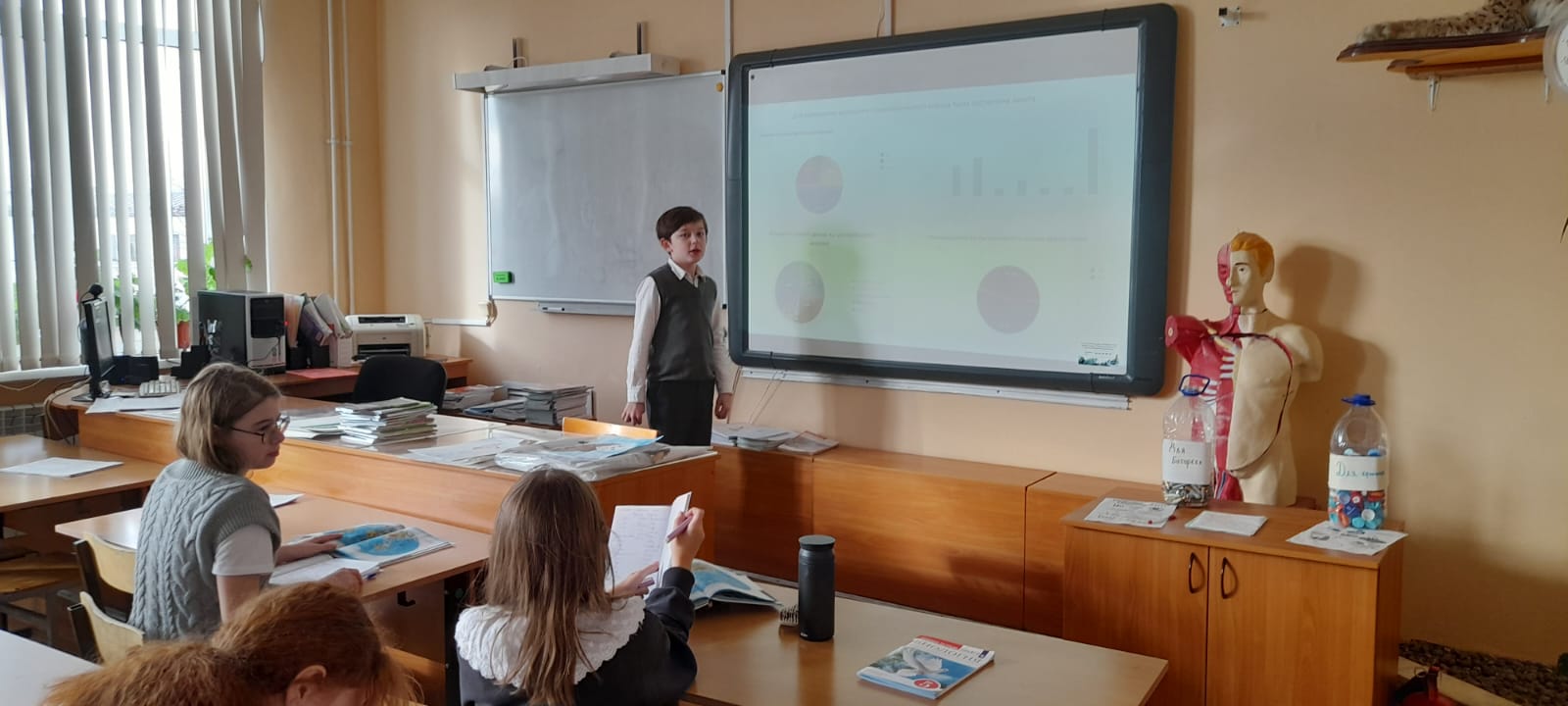 На уроке были заслушаны доклады исследовательских работ. Ситдиков Саид рассказал о вреде газированных напитков, о факторах, отрицательно влияющих на организм человека. Зенин Никита рассказал о полезных свойствах молока, о способах определения его качества в домашних условиях.