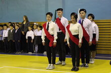 Каждый понедельник в школе начинается с торжественного выноса флагов РФ и РТ и исполнения гимнов РФ и РТ в спортивном зале школы. Неделя начинается активно.