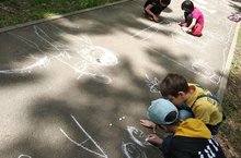 Сегодня лагерь устроил конкурс рисунков на асфальте в парке им. К. Тинчурина. Ребята веселились от души.
