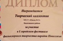 Учителя нашей школы приняли участие в 1 городском фестивале фольклорного творчества народов Поволжья, где их выступление было высоко оценено.