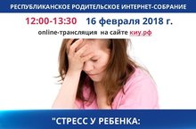 16 февраля 2018 года в 12 часов на сайте https://ieml.ru/roditelskoe-internet-sobranie/ состоится четвертое заседание Республиканского родительского интернет-собрания, посвященное методикам преодоления конфликтных и кризисных ситуаций в жизни детей и подростков. Тема заседания – «Стресс у ребенка: как распознать и чем помочь?» Модератором собрания выступит заместитель министра образования и науки Республики Татарстан Лариса Сулима.