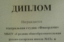 31 марта в ТЮЗе им.Г.Кариева прошел городской фестиваль – конкурс школьных театральных коллективов «Саяр». Наша школьная театральная студия «Фикердэш» показала отрывок из произведения Ильдара Юзеева «Таныш моңнар». В роли Резеды выступала Сафина Индира, Зуфара - Набиуллин Адель, в роли автора Гайзуллин Саяр.