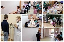 Все ребята прошли медицинский осмотр. Затем приняли участие в конкурсе чтецов и рисунков, посвящённых "Году театра".