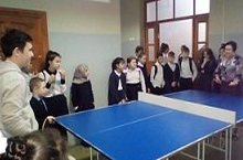 Посмотрите, как интересно мы живем. Турнир по настольному тенису на перемене. Классный руководитель против ученика. Молодцы!