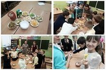 В школе продолжается работа над проектом "Здоровое птание детям" Сегодня руководитель проекта побывала в первом классе. Ребята узнали о правилах здорового питания и приготовили сами себе "правильную" еду.
