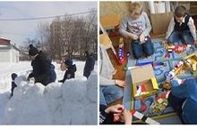 Разнообразна жизнь школьного лагеря. Сколько событий происходит за день. Вот такую снежную крепость мы построили.