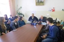 В пятом классе прошел классный час "Есть такая профессия Родину защищать". Ребята познакомились с особенностями профессии офицера.