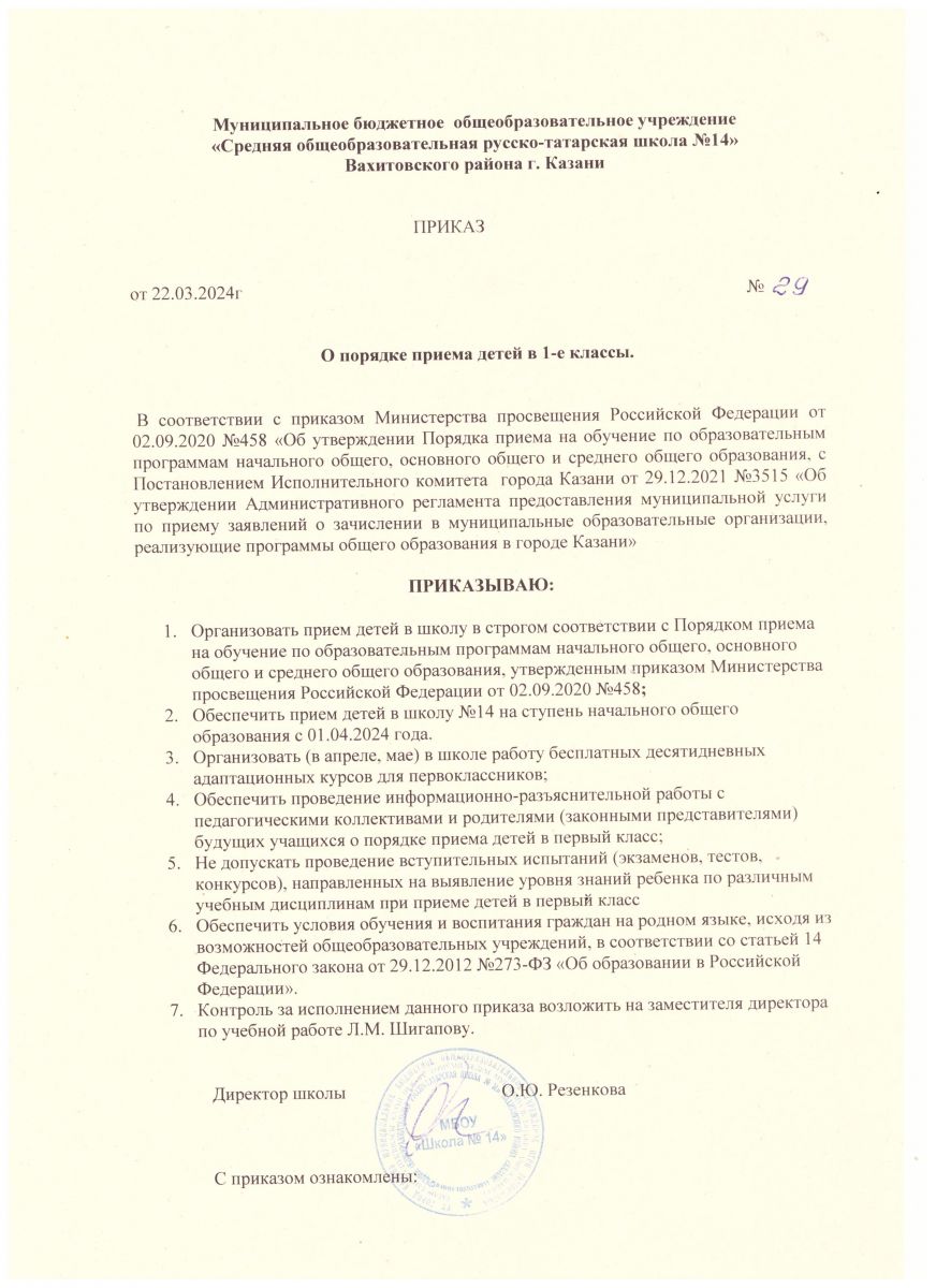 Приемная кампания по зачислению в 1 класс стартует с 1 апреля 2024 года