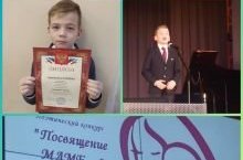 Ул 24 нче ноябрь көнне Гала концертта Расул Гамзатовның "Әниләрне саклагыз "шигырен оста башкарганы өчен II дәрәҗә лауреат исеменә лаек булды һәм диплом белән бүләкләнде. Укытучысына Костюнина Г.Р рәхмәт хаты бирелде. -