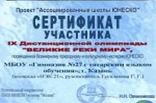 В рамках сетевого взаимодействия АШ ЮНЕСКО экологическая команда нашей гимназии ВЭК 21 под руководством учителя математики Гильмиевой Г.Г приняла участие в Международной дистанционной олимпиаде «Великие реки мира».
